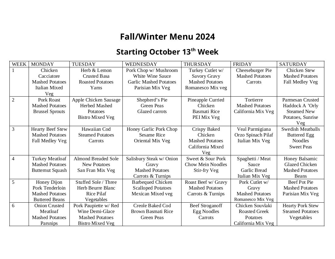 (In order to receive a meal for Sunday, two meals are ordered for Saturday)